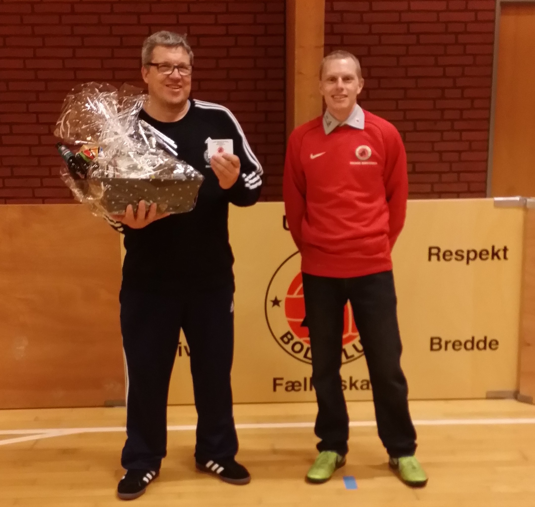 Klubben har holdt afslutning for JK. Vi ville gerne overaske JK, så en af trænere havde aftalt med JK at han skulle komme og hjælpe med en træning i hallen. Mens de trænede i den lille hal, samlede vi andre os i den store hal, og da træningen var slut kom JK ind i den store hal til store klapsalver fra spillere og trænere. Her fik han overrakt en kurv med lidt til den søde tand, han fik også et personligt medlemskort til Tarp Boldklub´s stadion, som skal fremvises hver gang han kommer og skal se kampe.